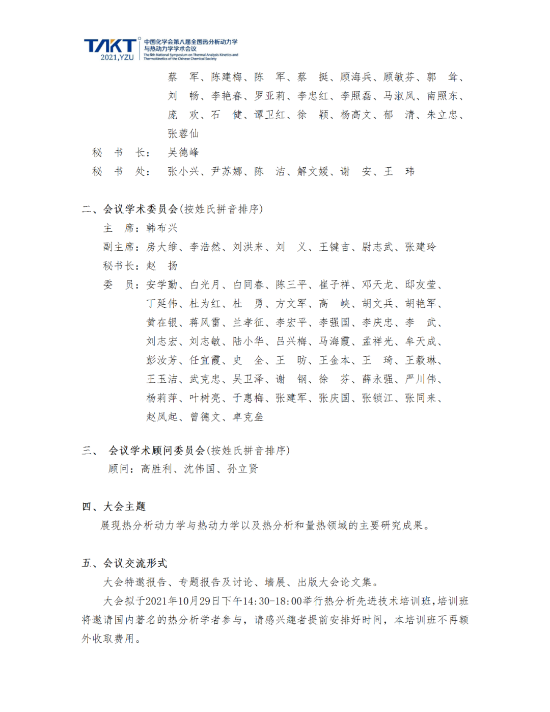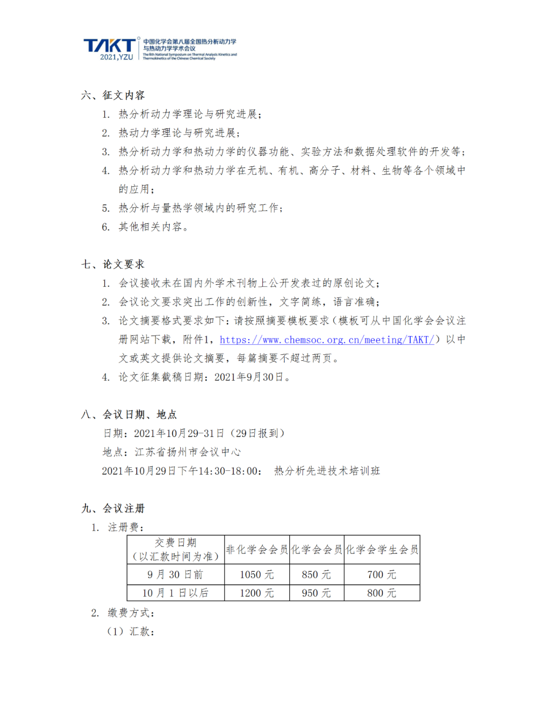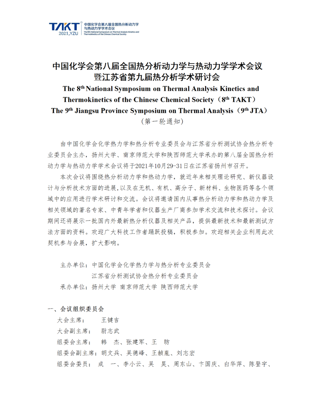 中國(guó)化學(xué)會(huì)第八屆全國(guó)熱分析動(dòng)力學(xué)與熱動(dòng)力學(xué)學(xué)術(shù)會(huì)議暨江蘇省第九屆熱分析學(xué)術(shù)研討會(huì)(第一輪通知)