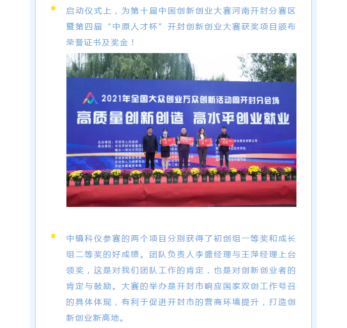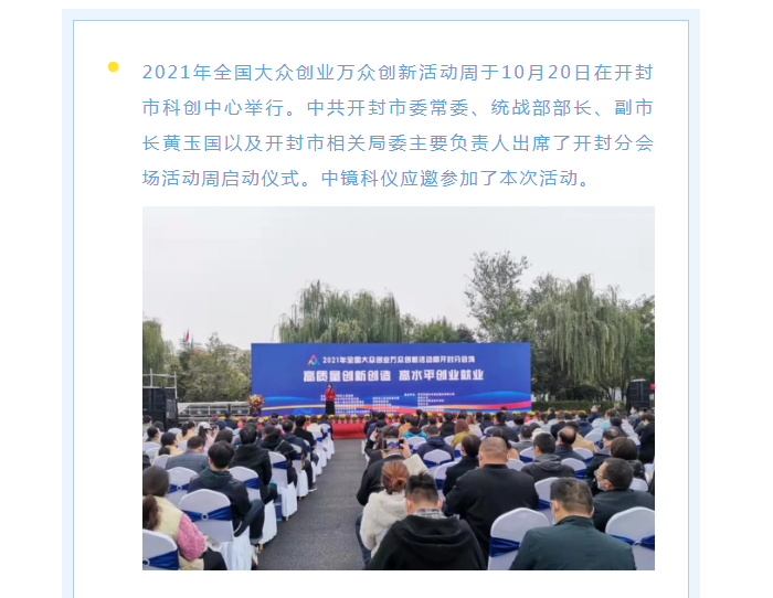 熱烈祝賀中鏡科儀在2021年全國大眾創業萬眾創新活動中再創佳績