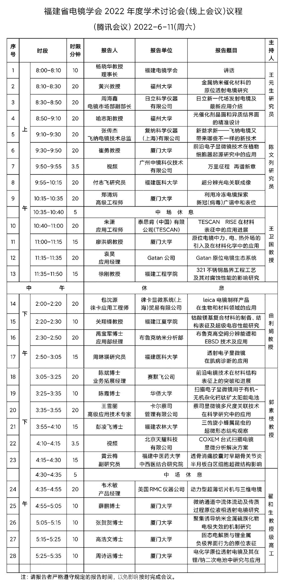 福建省電鏡學會2022年度學術討論會(線上會議)具體事項的通知